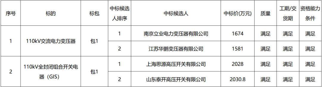 南方电网公司2022年主网一次设备(深圳110kV主变、深圳110kV组合电器)结构化评标专项招标项目(招标编号:CG0000022001542750),经评标委员会评审,现将中标候选人公示如下:
