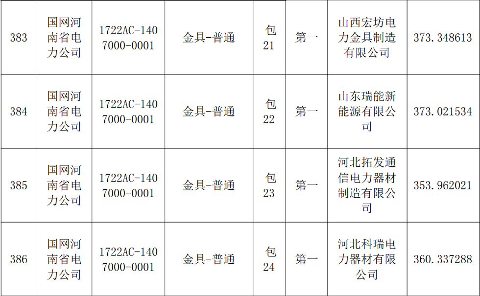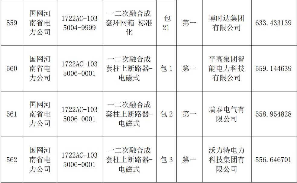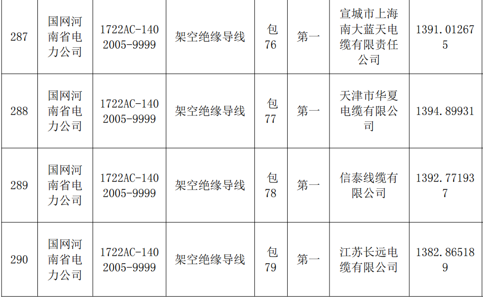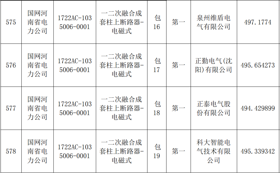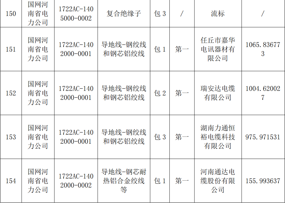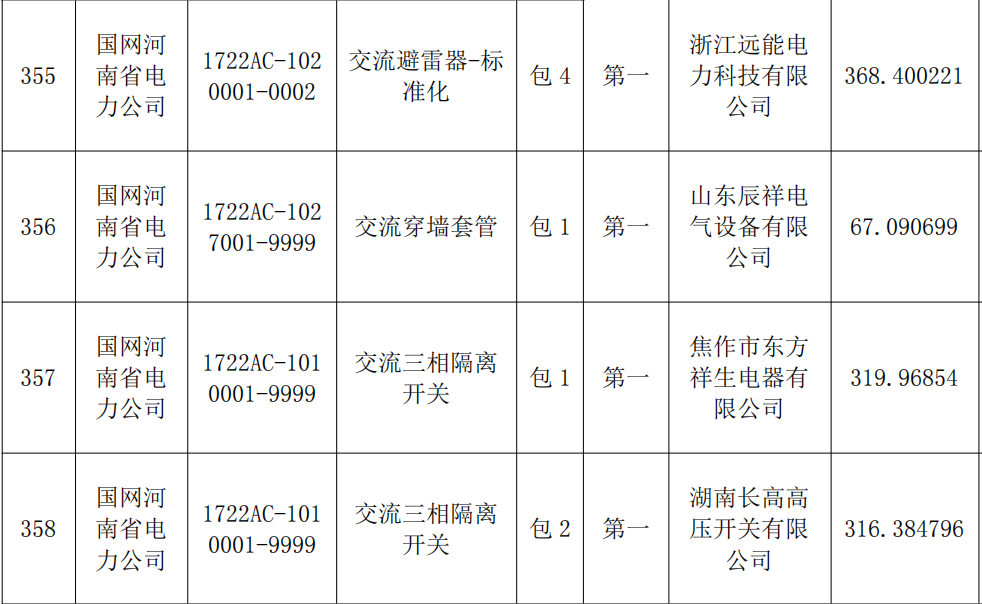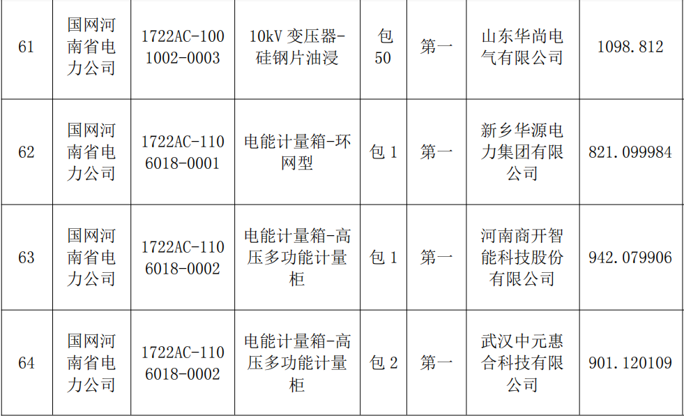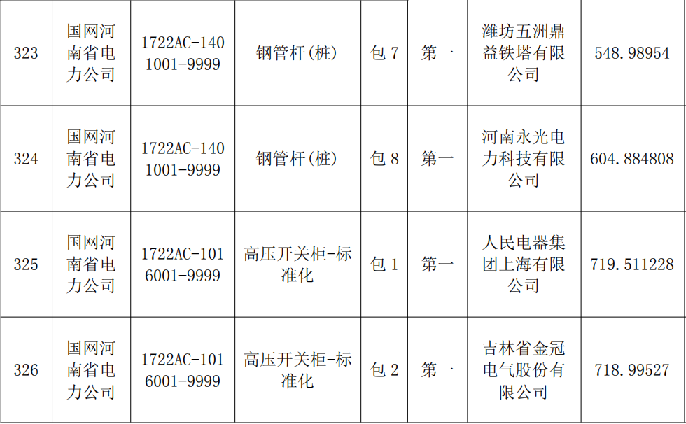 国网·河南|2022年第三次配网物资协议库存招标采购推荐的中标候选人公示