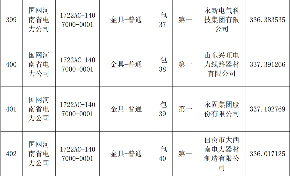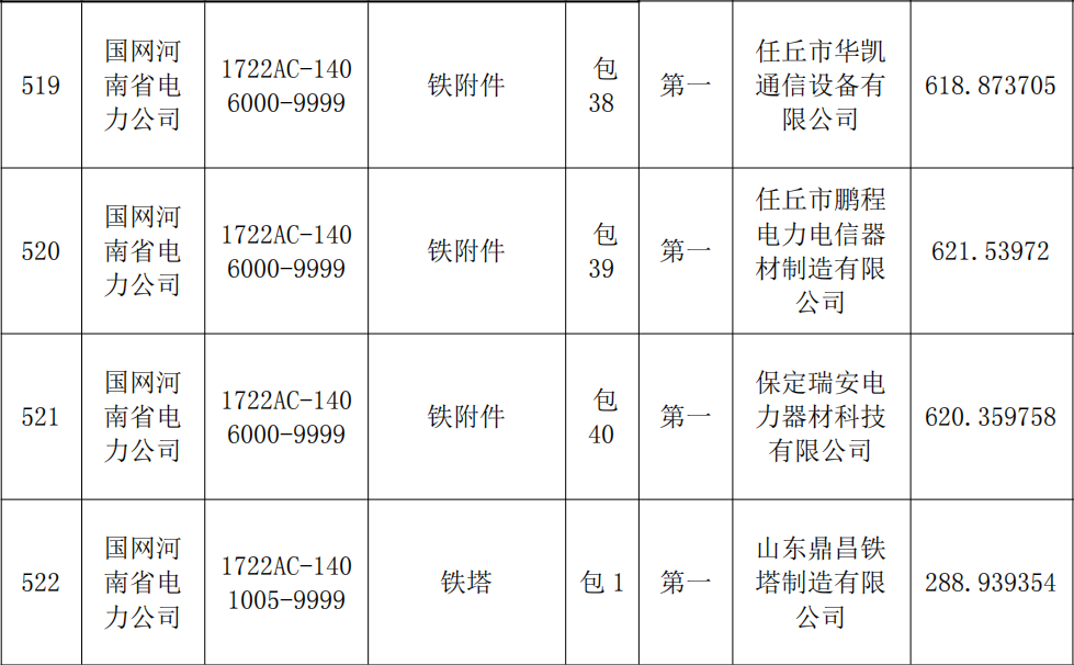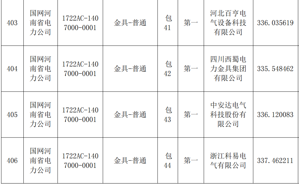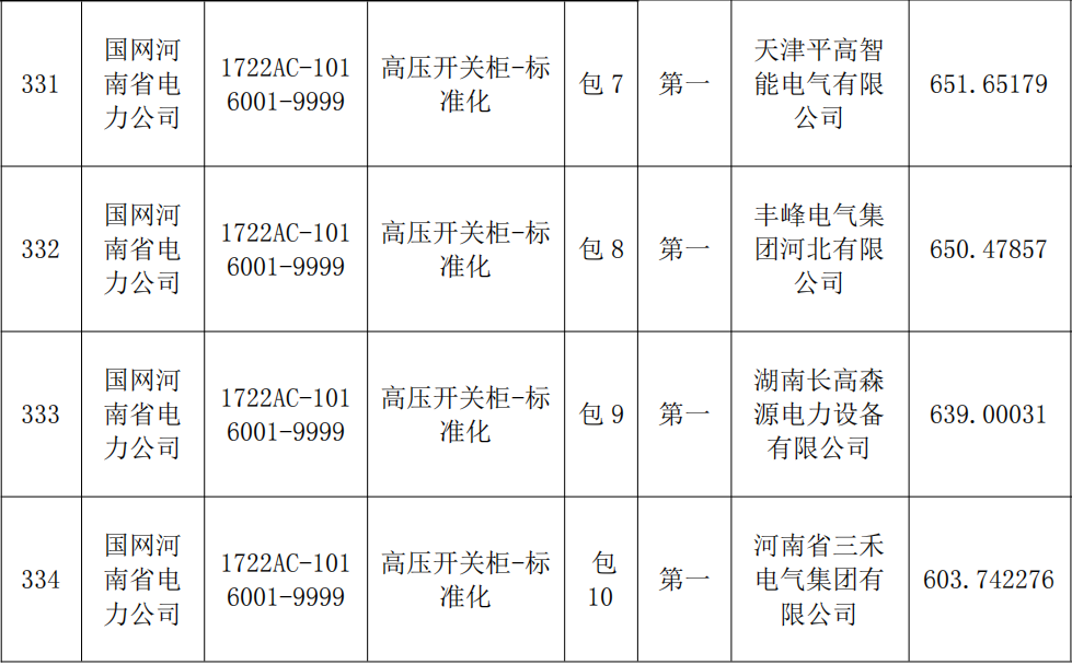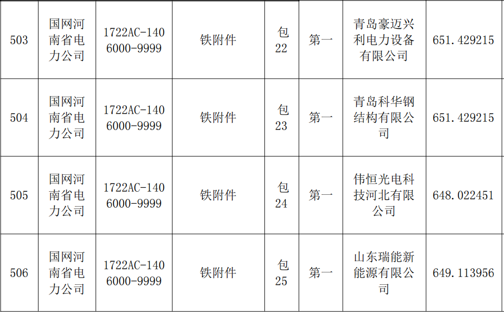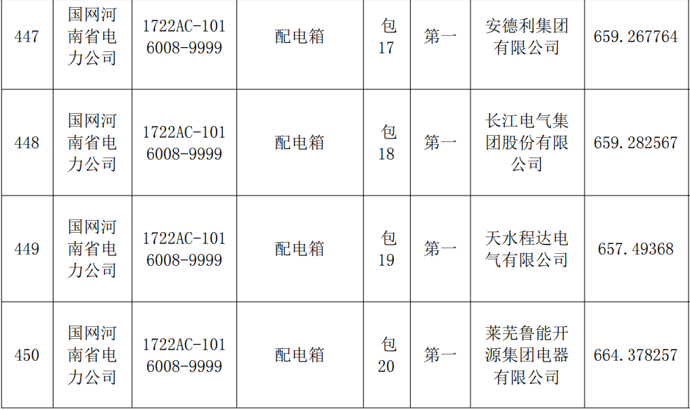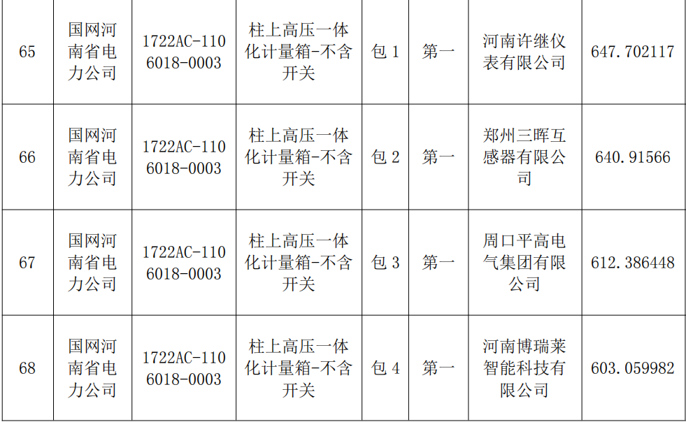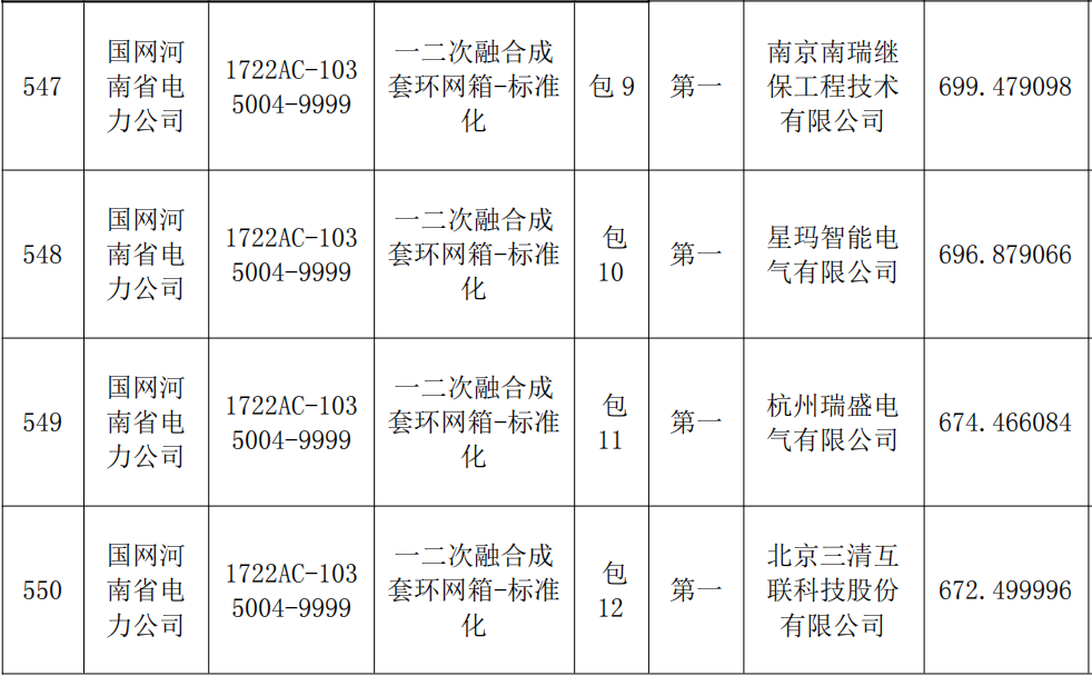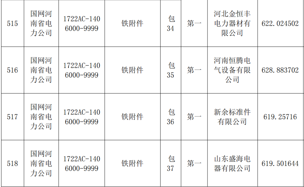 国网·河南|2022年第三次配网物资协议库存招标采购推荐的中标候选人公示