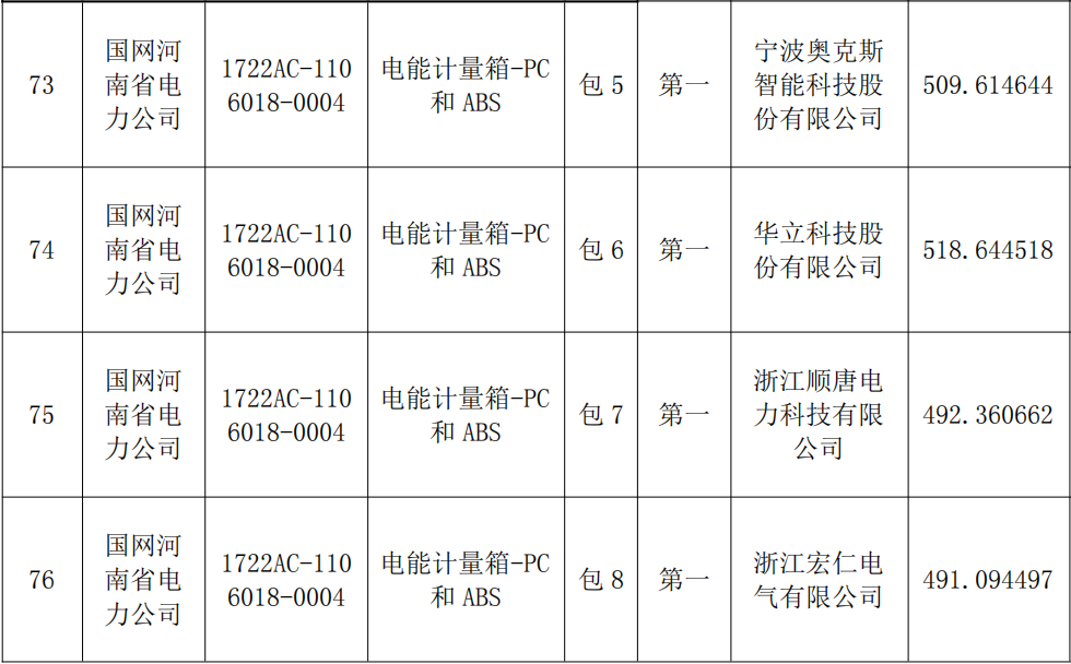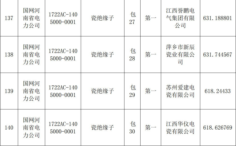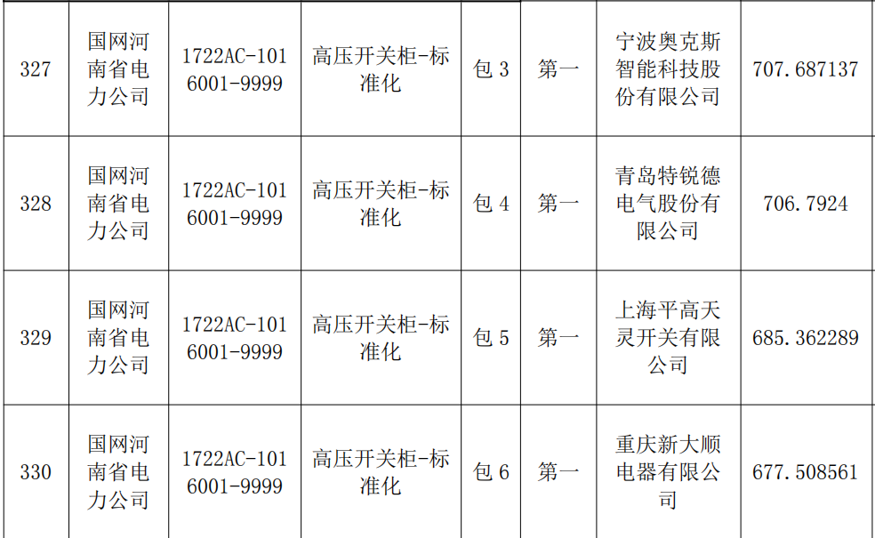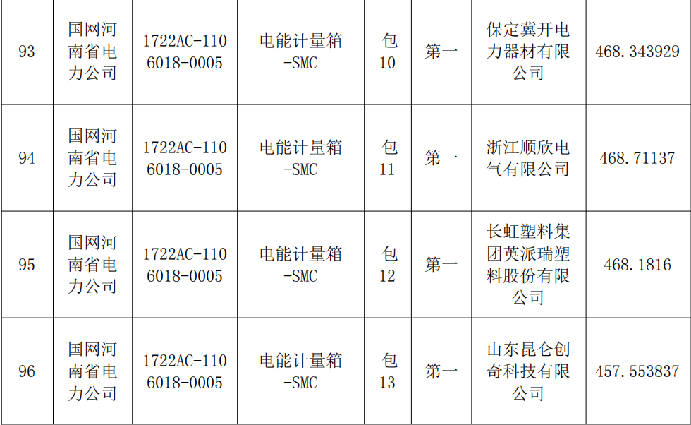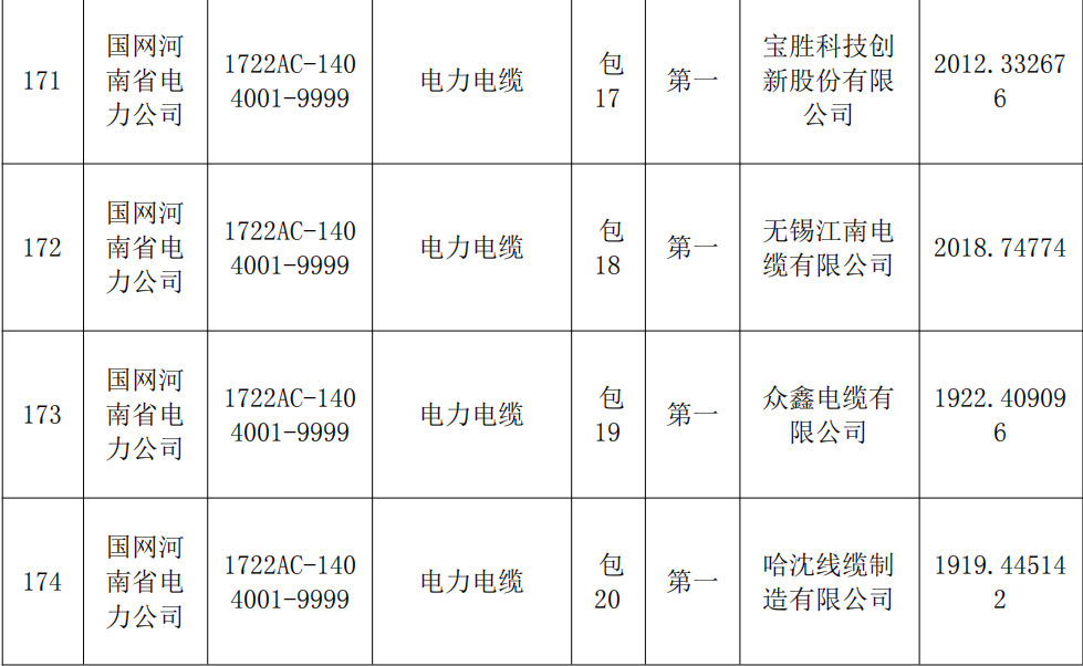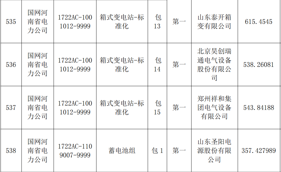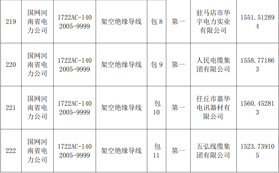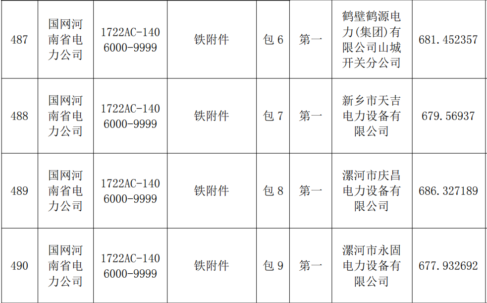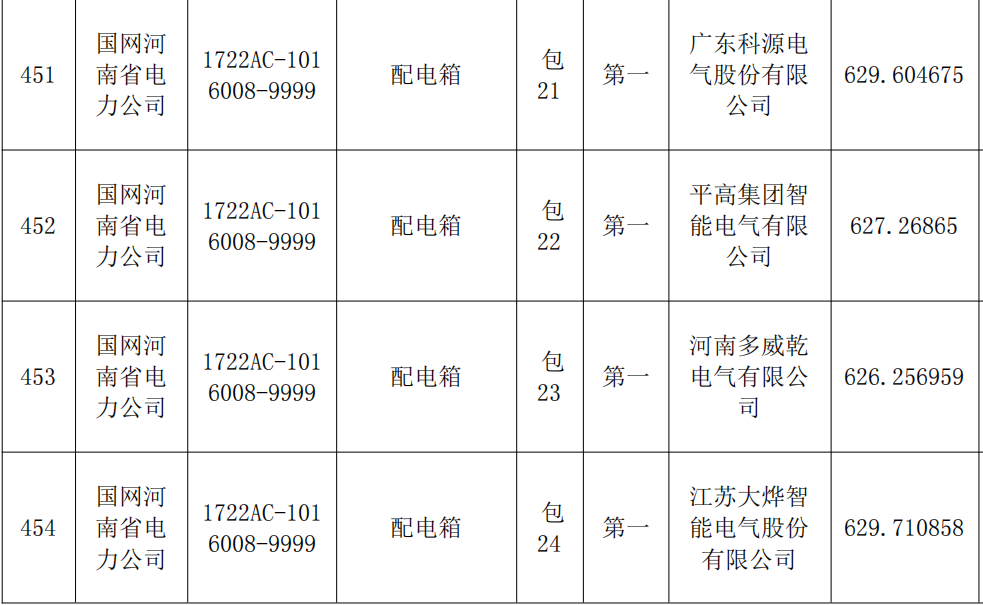 国网·河南|2022年第三次配网物资协议库存招标采购推荐的中标候选人公示