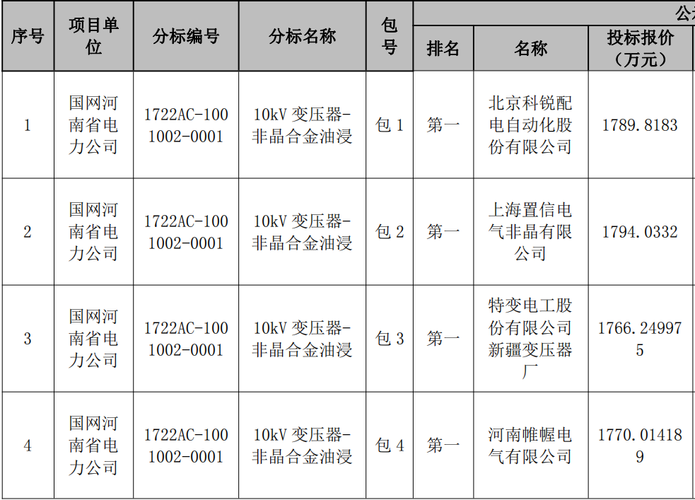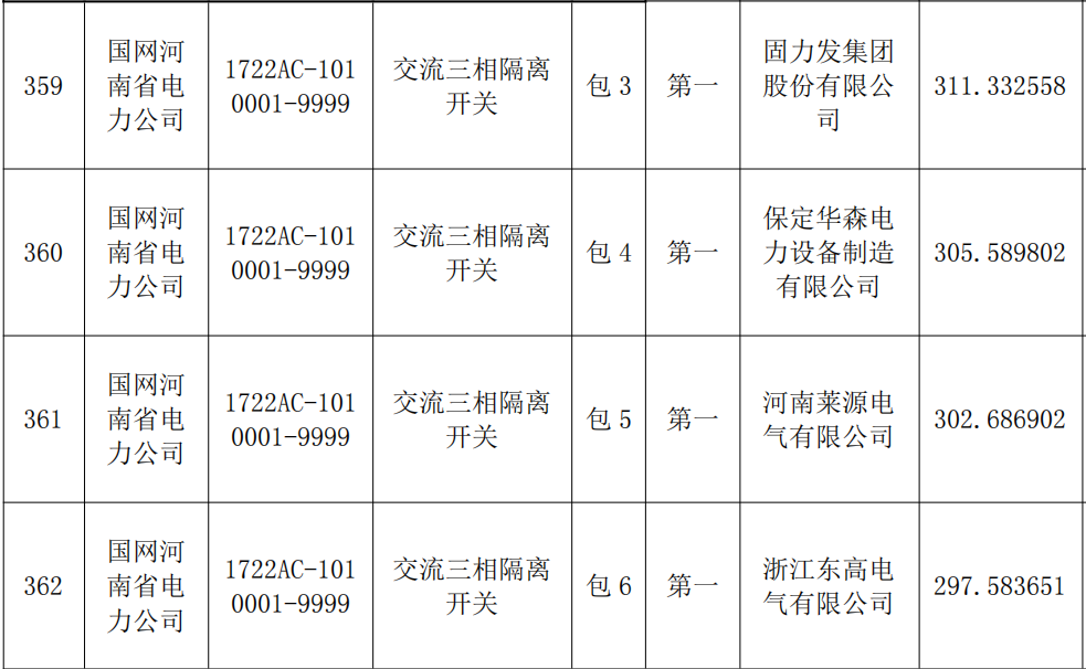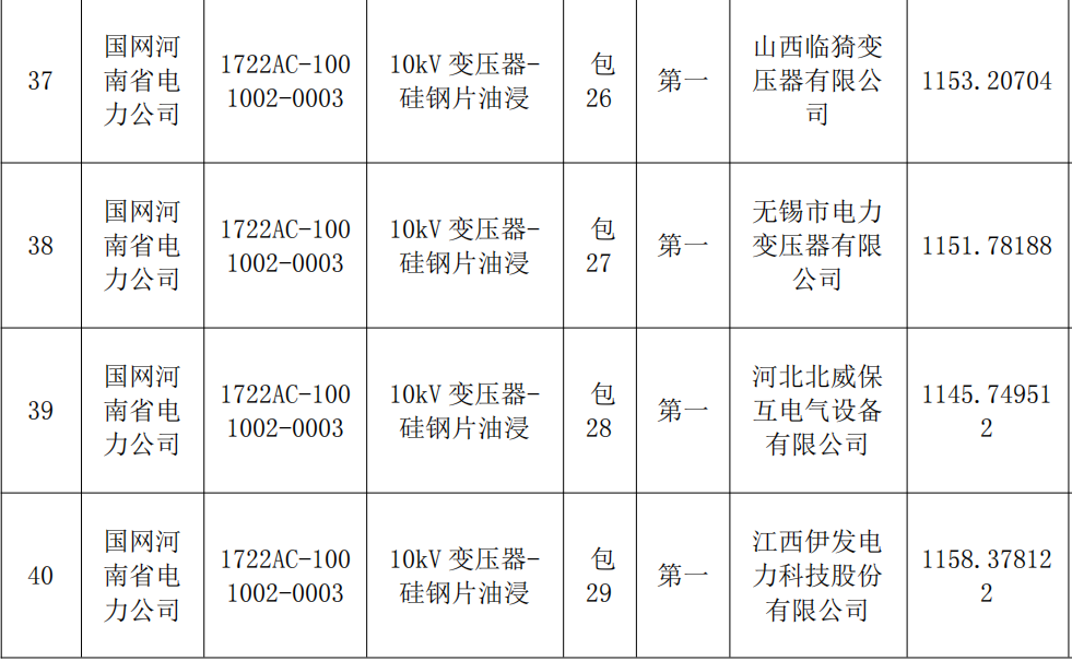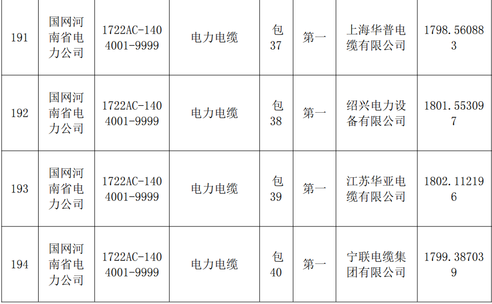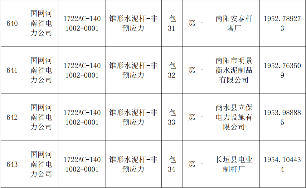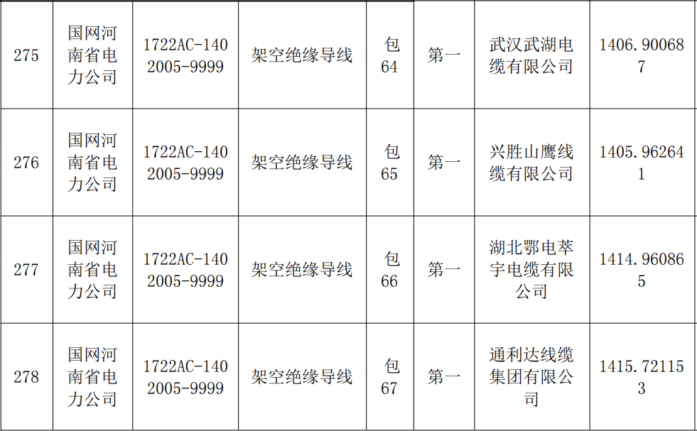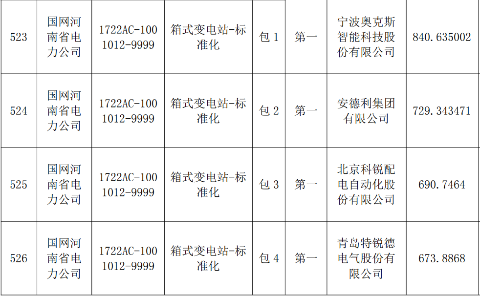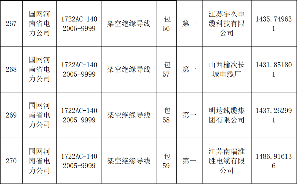 国网·河南|2022年第三次配网物资协议库存招标采购推荐的中标候选人公示